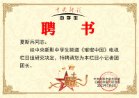 中央新影中学生频道璀璨中国栏目任命夏斯兵为小记者团团长